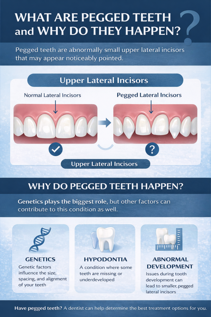 Pegged teeth are more common than most people realize. That small, cone-shaped lateral incisor sitting beside your front teeth, noticeably narrower than everything around it, is something a lot of people notice every time they look in the mirror. For some, it is a minor thing. For others, it quietly chips away at their confidence, showing up in every photo, every smile, every conversation.